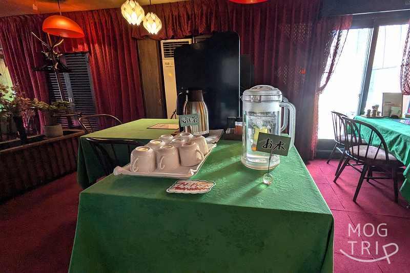お店があるのは、かつて〝仏蘭西亭(ふらんすてい)〟という洋食店があった場所。仏蘭西亭は1974年から49年間も続いたお店でしたが、店主さんの体調不良により2023年に閉店となりました。〝モロウⅡ〟では、あえてこの仏蘭西亭の当時の雰囲気をそのまま残すことに。赤いカーペット・緑のテーブルクロス・照明・建具など、どれをとっても昭和レトロでステキな空間が広がっていました。